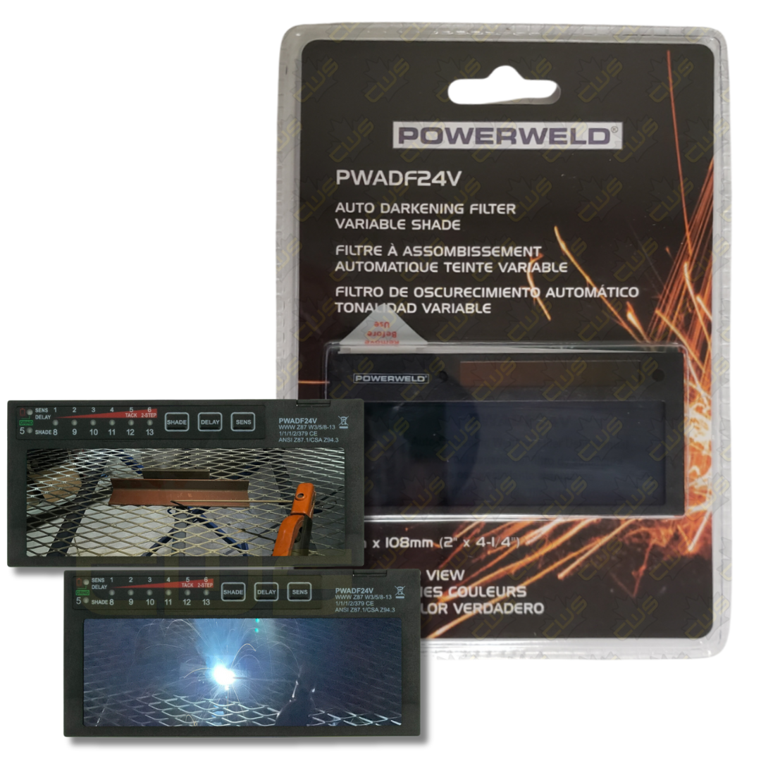 The Powerweld variable shade 2x4 lens is an auto-darkening drop-in lens designed to fit standard fixed-shade welding helmets.
